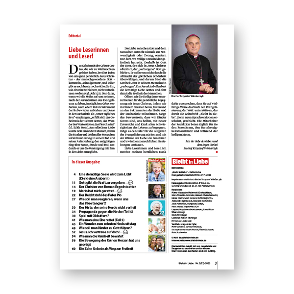 In der neuen Ausgabe von „Bleibt in Liebe“ (2/2026) lesen Sie: